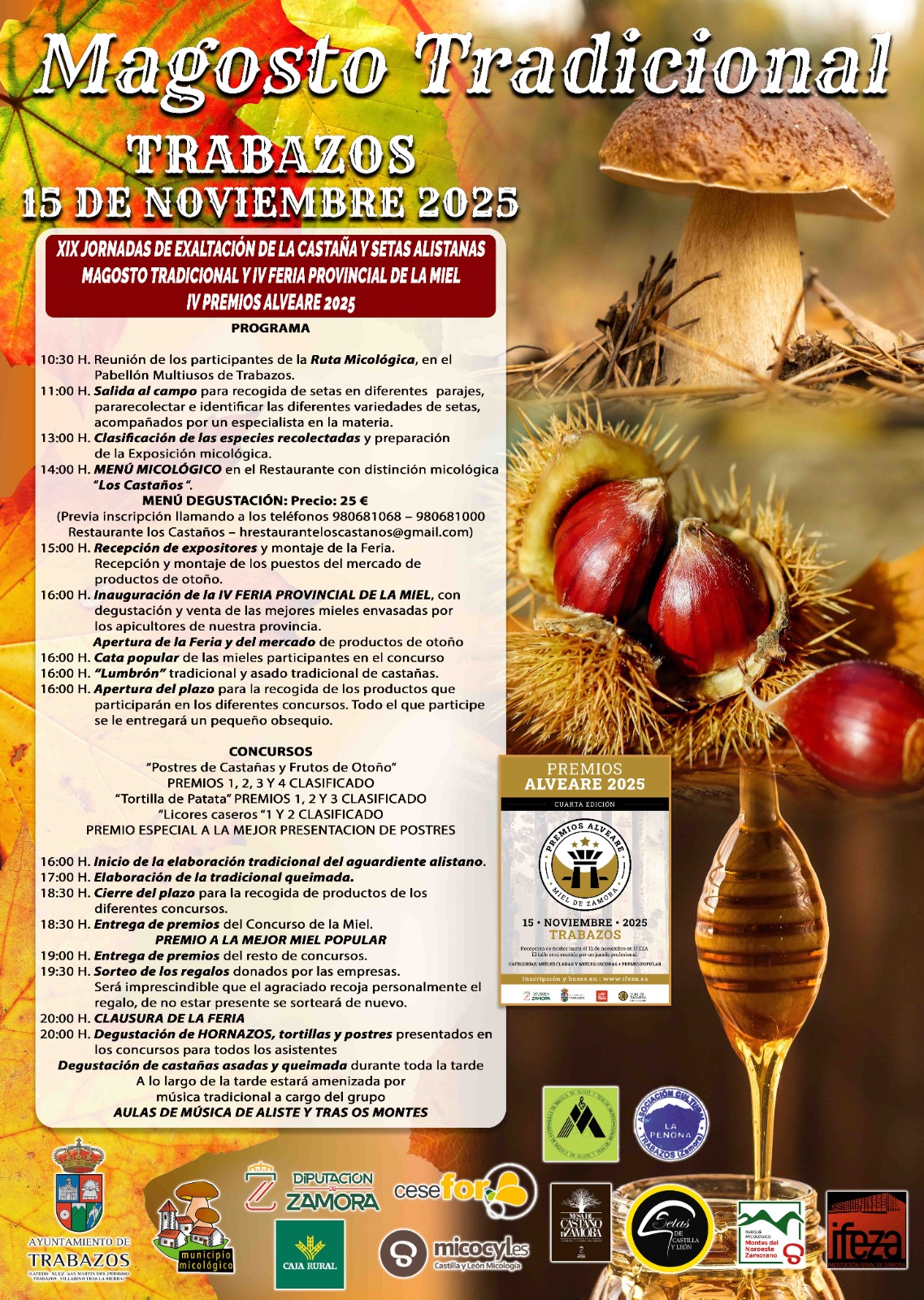 XIX JORNADAS DE EXALTACION DE L CASTAÑA Y SETAS ALISTANAS. MAGOSTO TRADICIONAL Y IV FERIA PROVINCIAL DE LA MIEL. IV PREMIOS ALVEARE 2025.