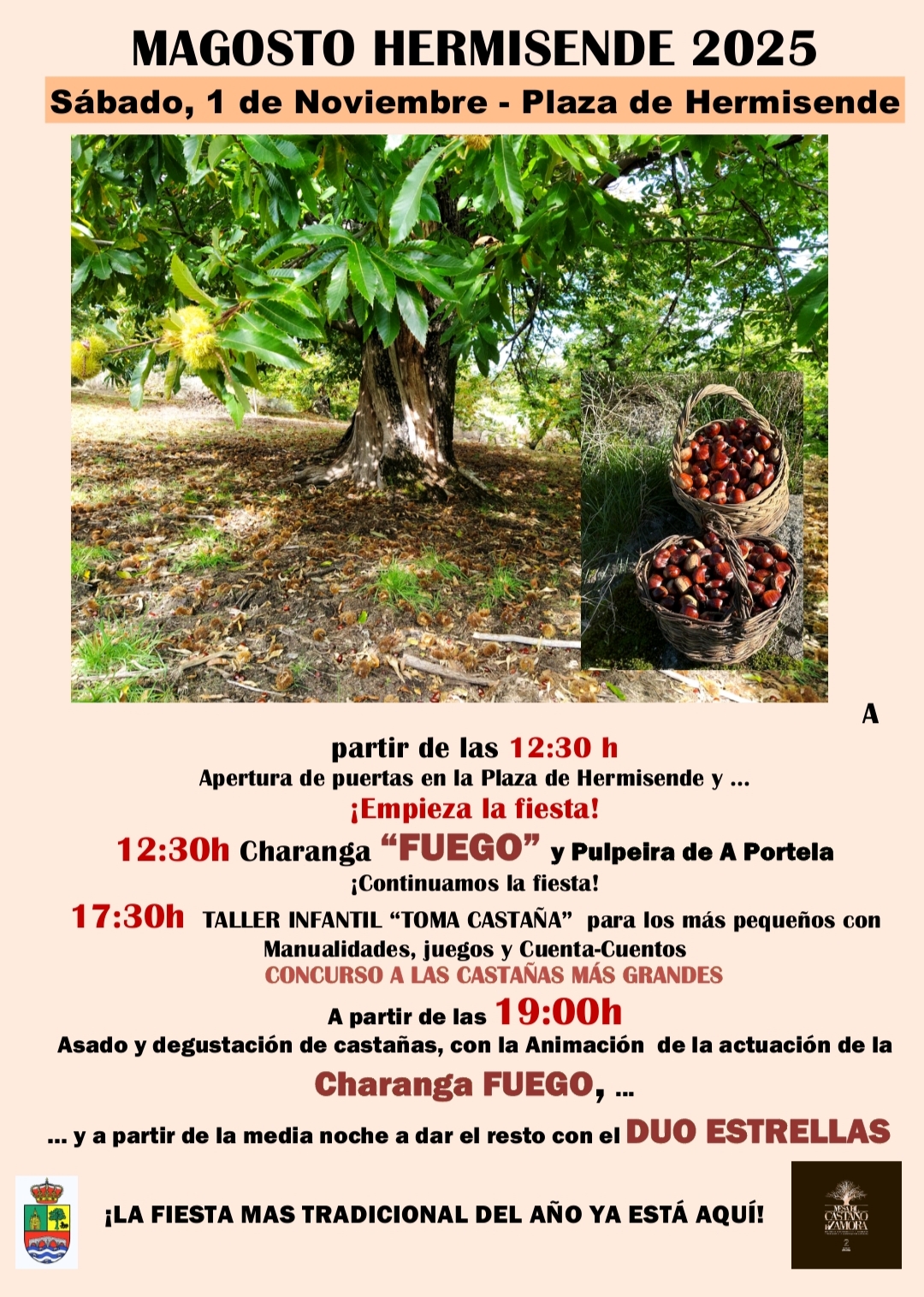 El 1 de noviembre se celebró el tradicional magosto de Hermisende. El magosto comenzó con la apertura de puertas en la Plaza Mayor, a las 12:30h. La mañana estuvo animada[...]