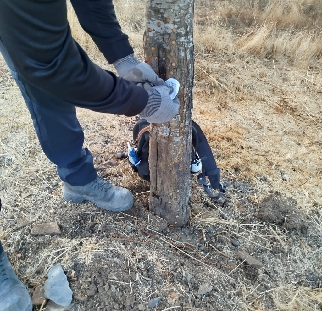 Imagen 1: Toma de muestras en árbol afectado.
